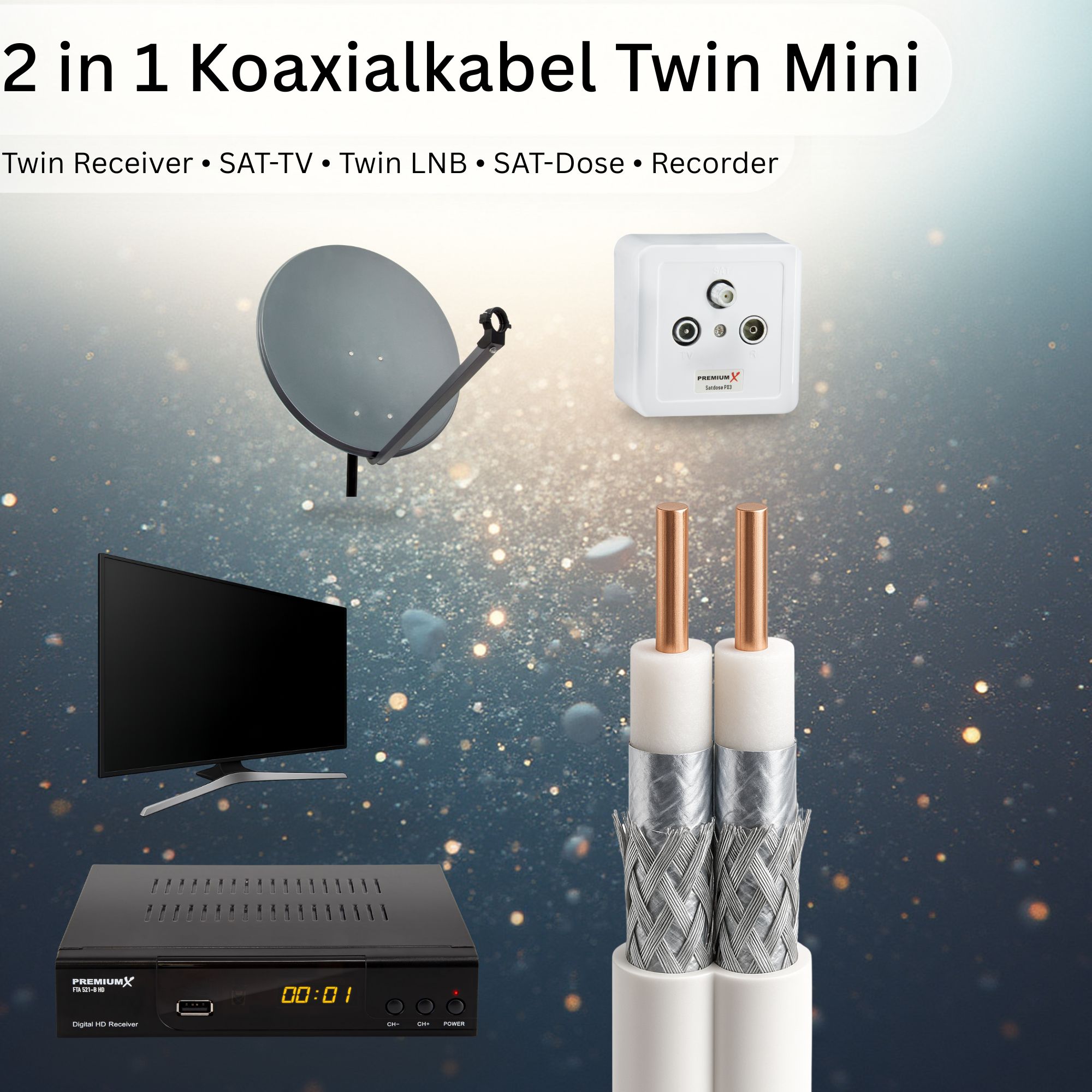 1x 20 Meter Sat Koaxial Kabel 90dB Twin Mini 2x 4 mm