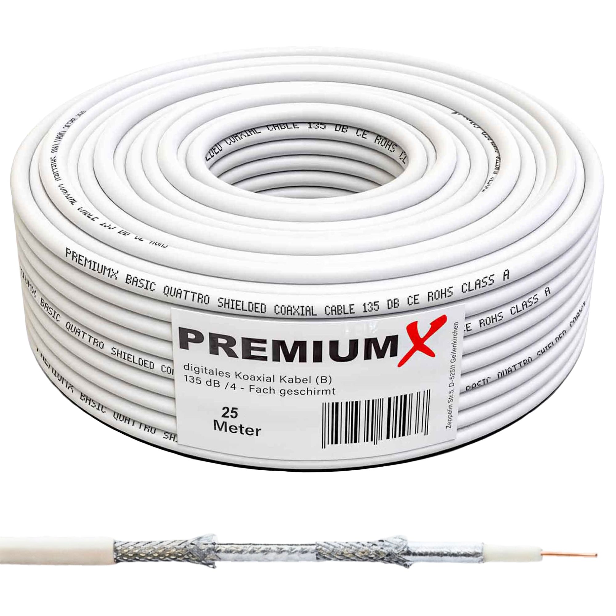 PremiumX 25m BASIC Koaxialkabel 135dB 4-fach CCS SAT Kabel Antennenkabel