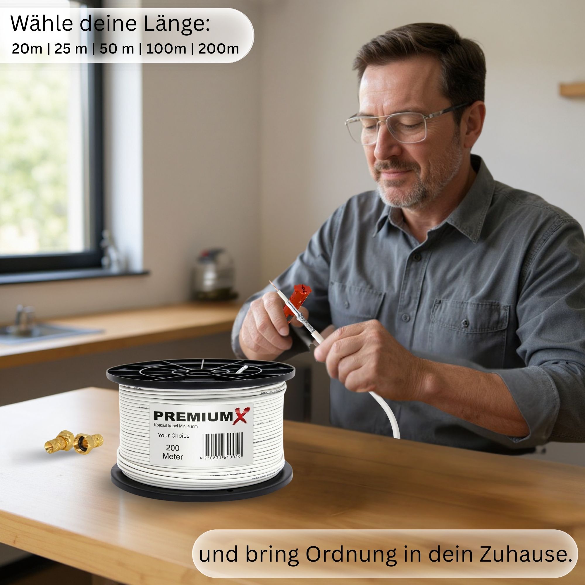 Premium X Mini 50 Meter Koaxialkabel-Set für schnelle und zuverlässige Signalübertragung