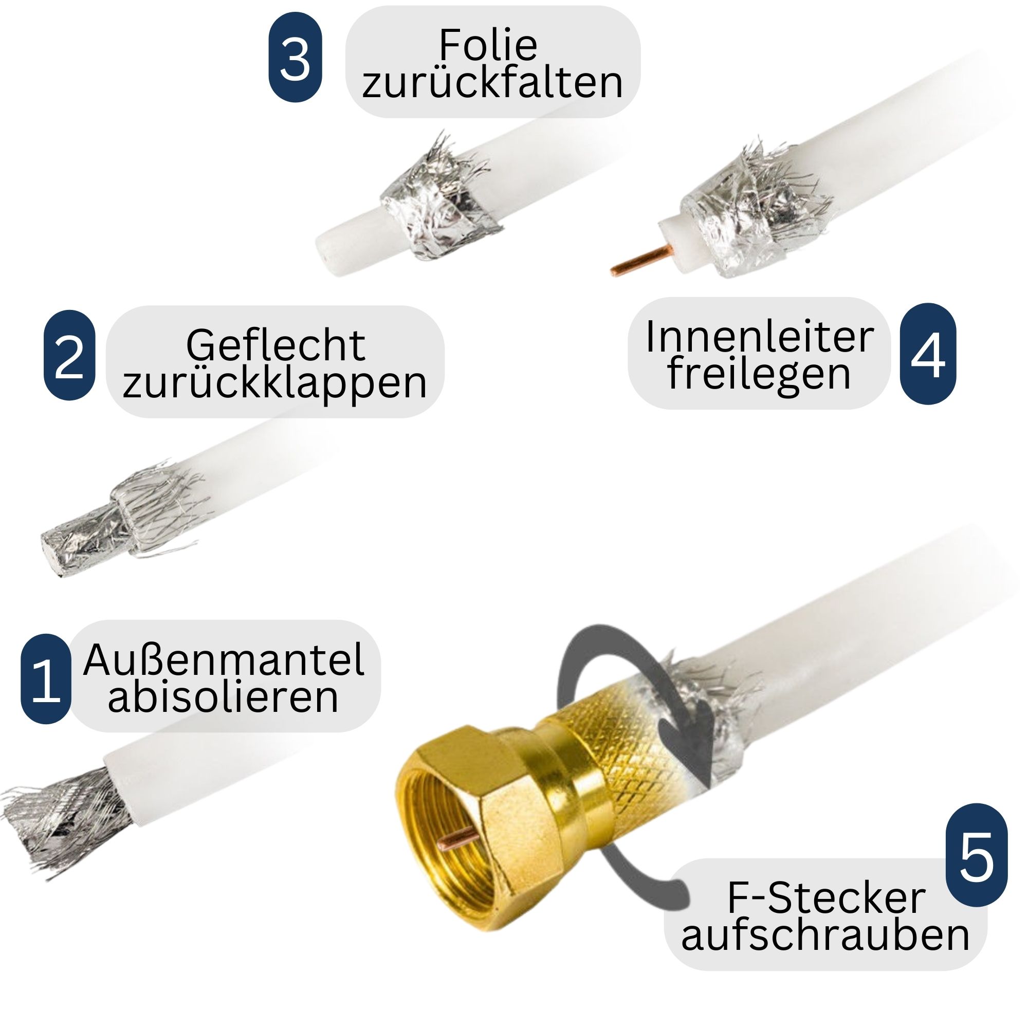 - Das Set enthält 10 passende F-Stecker für eine problemlose Verbindung.