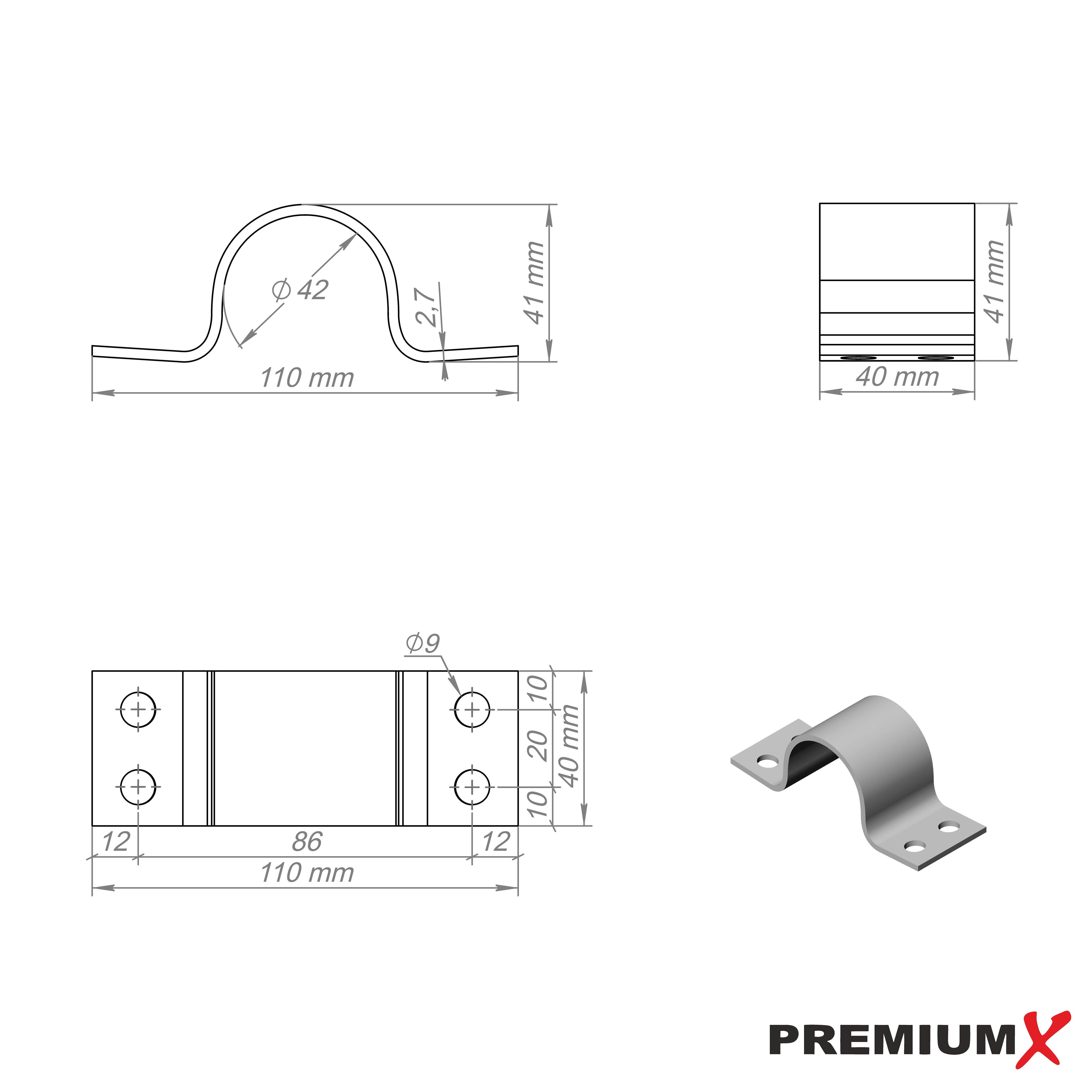 PremiumX Mastschelle 42mm 4-Loch Stahl SAT Mast Rohrschelle