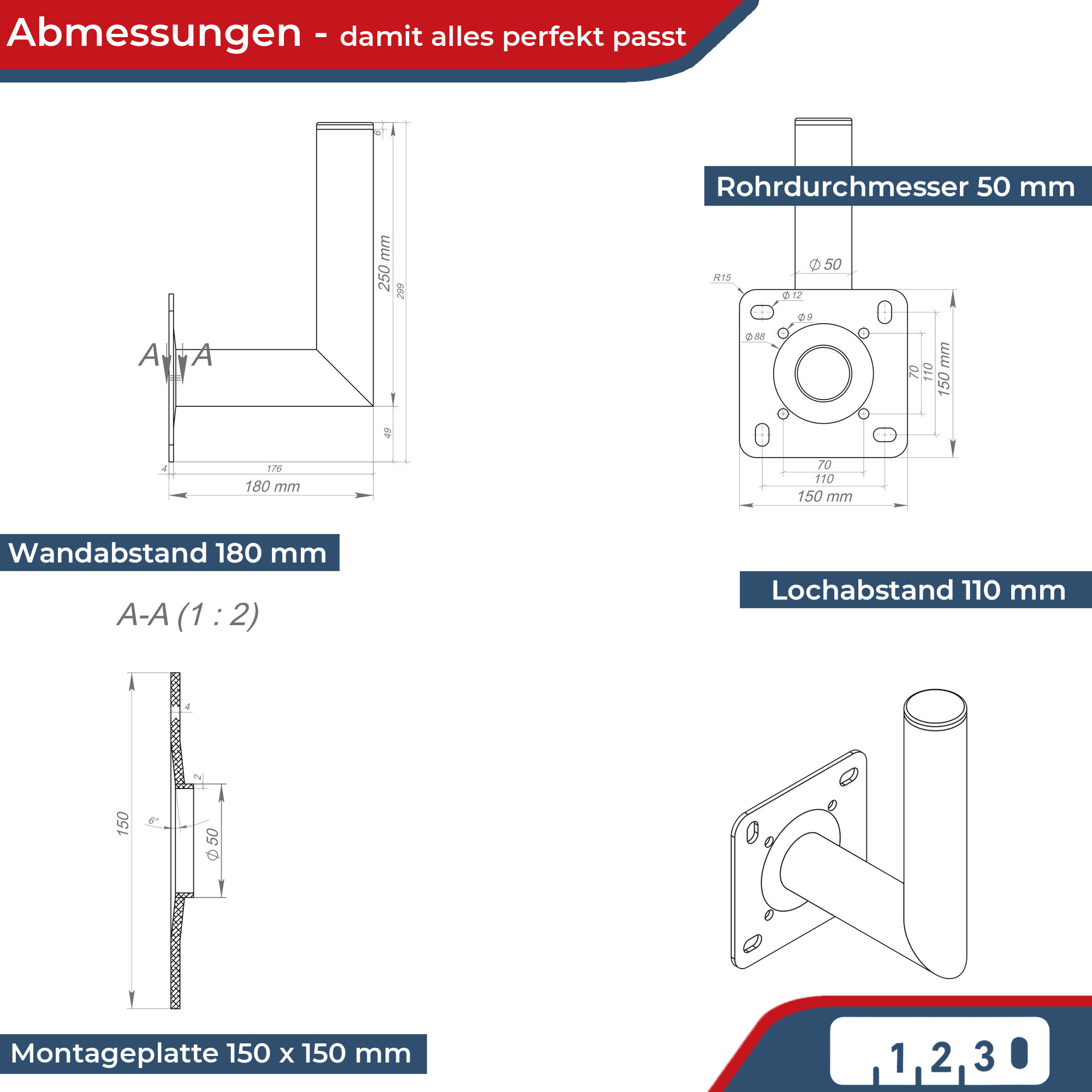 PremiumX 18cm Wandhalter ALU Halterung SAT Schüssel Fischer Schraubensatz