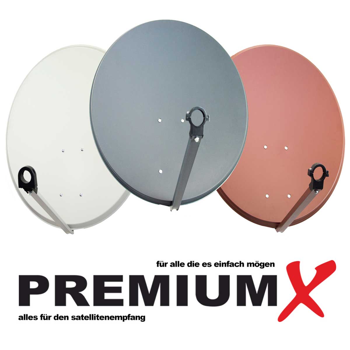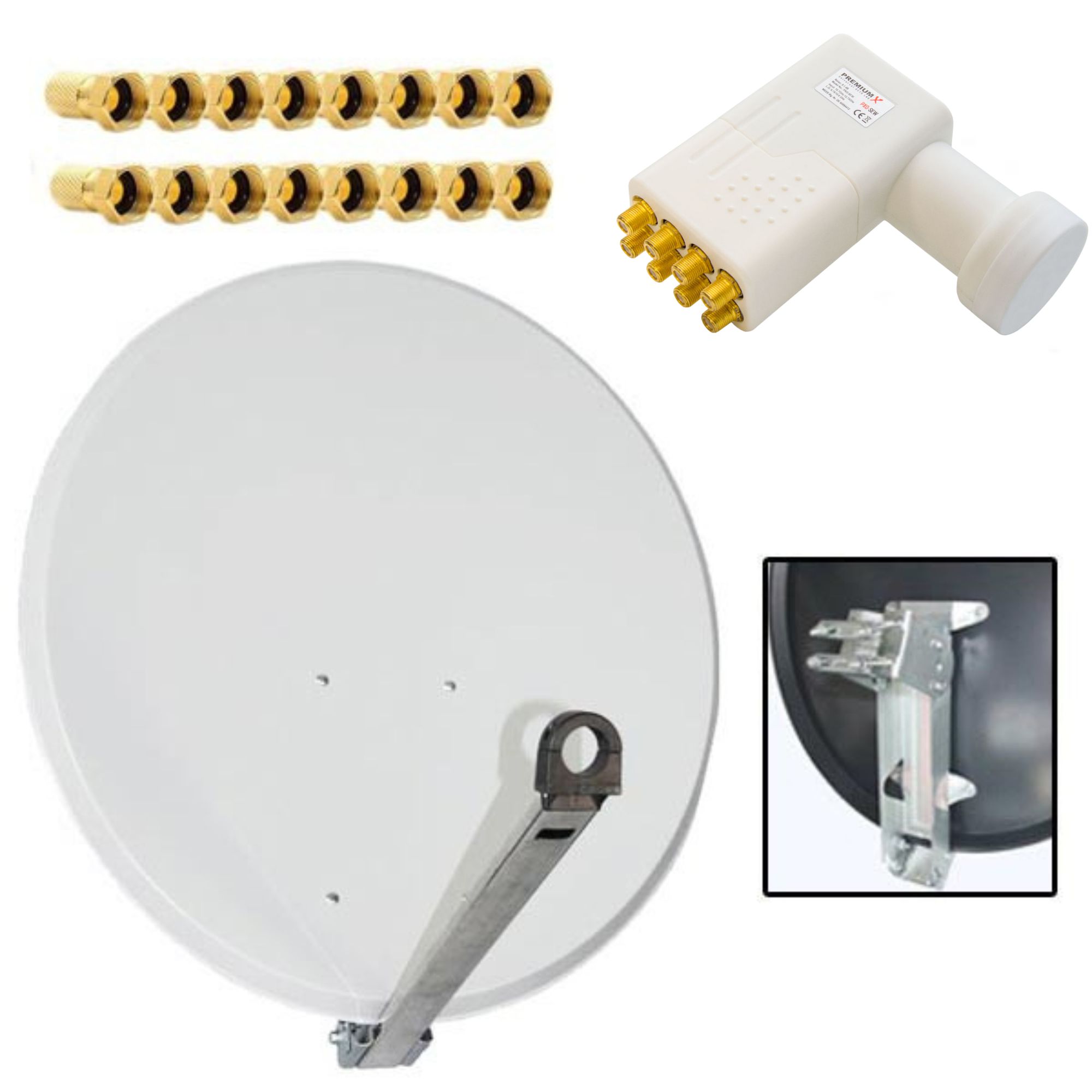 PremiumX Antenne XTS 85cm Stahl Sat Schüssel Spiegel Hellgrau mit PremiumX LNB Octo 0,1 dB zum Direktanschluss von 8 Teilnehmern Digital HDTV FullHD 3D inkl. 16 F-Stecker mit Dichtring