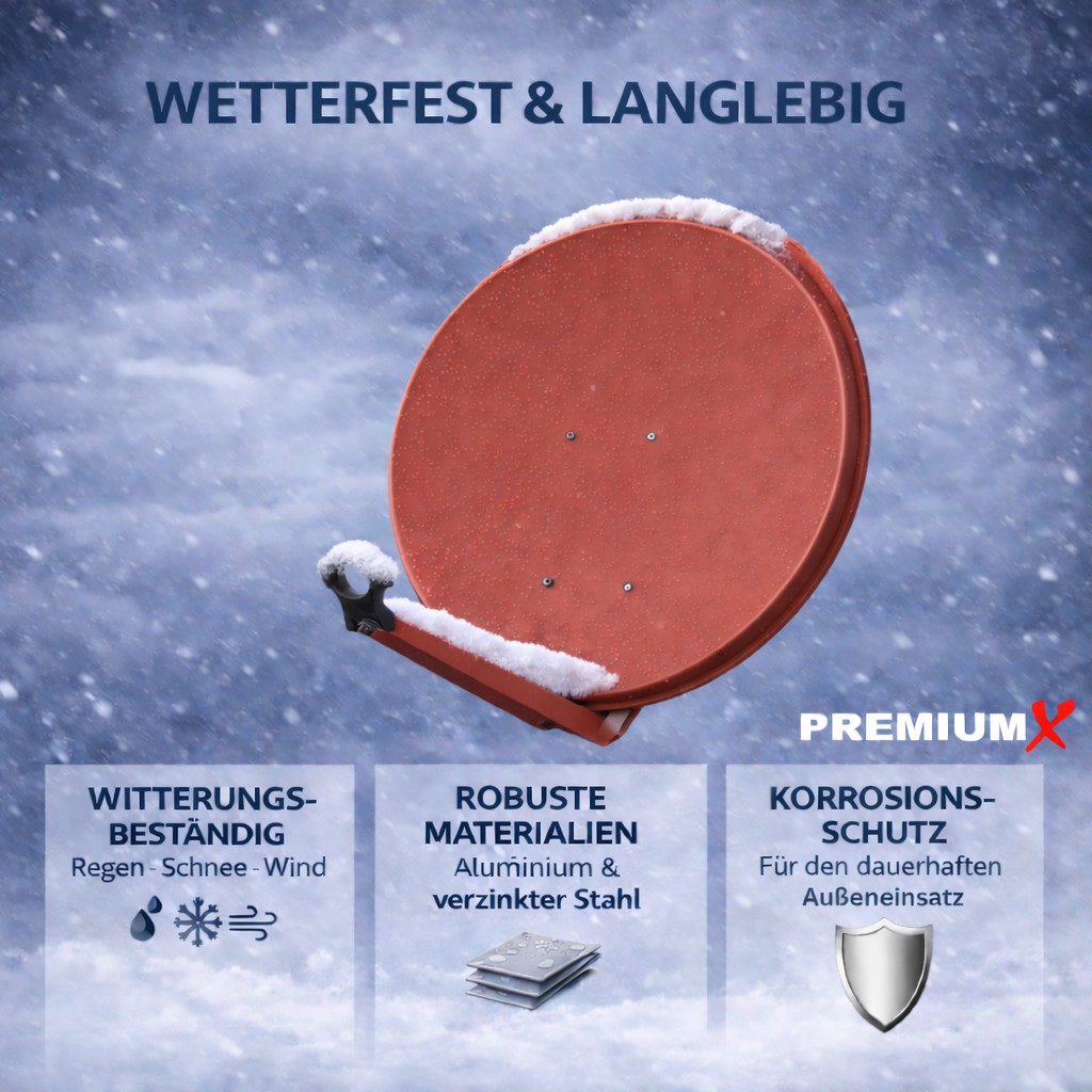 PremiumX PXA100 Satellitenschüssel 100cm Aluminium Ziegelrot Satellitenantenne SAT Spiegel