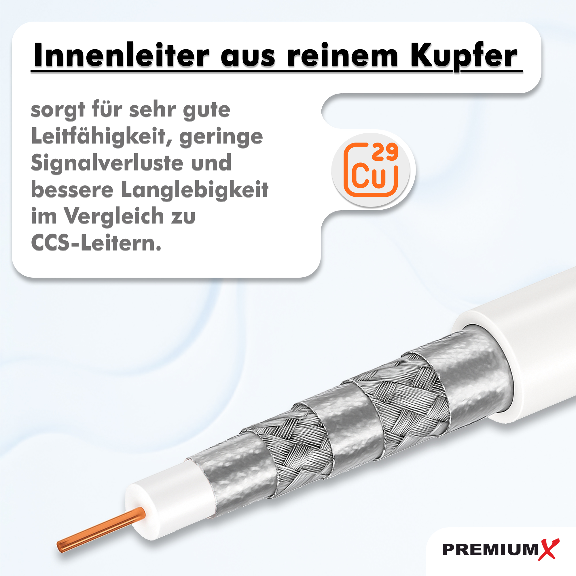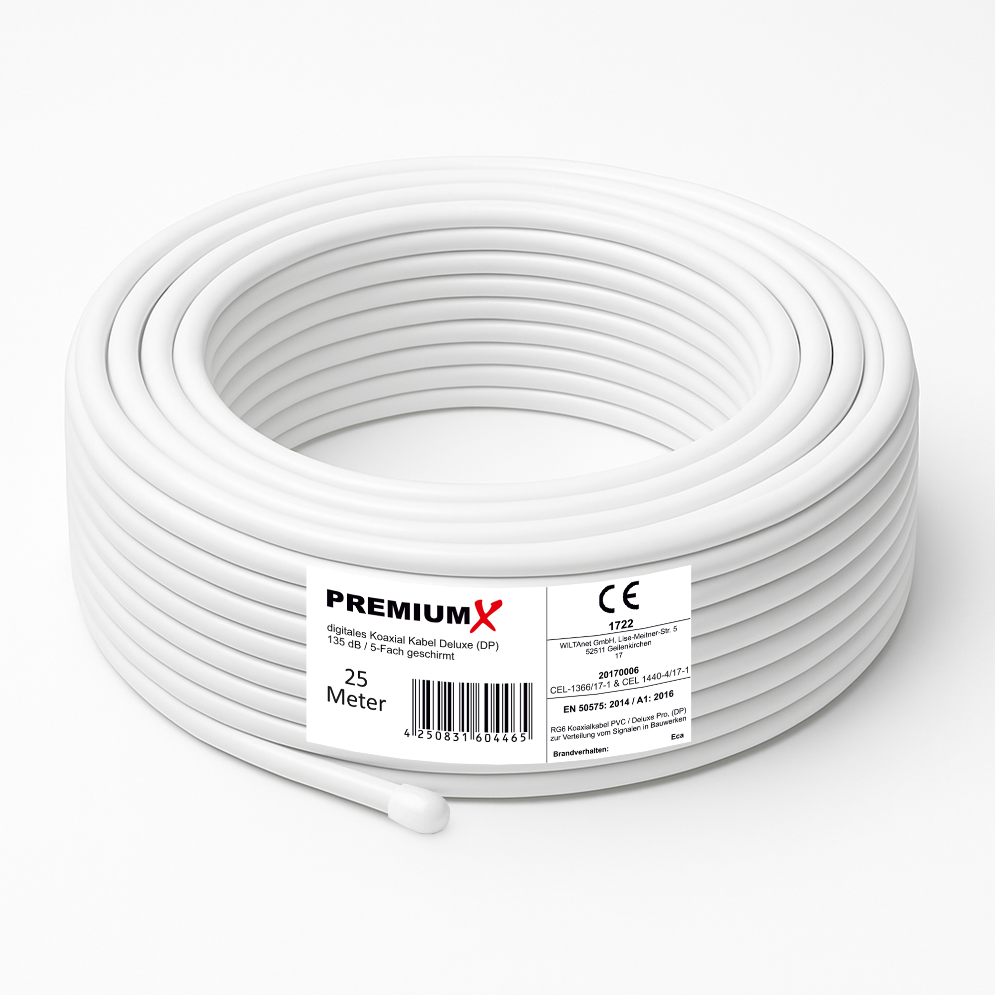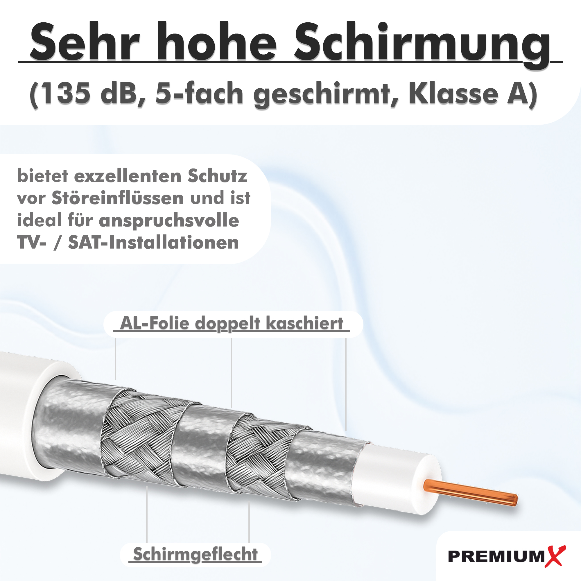 PremiumX 25m DELUXE PRO Koaxialkabel 135dB 5-Fach reines Kupfer SAT Antennenkabel