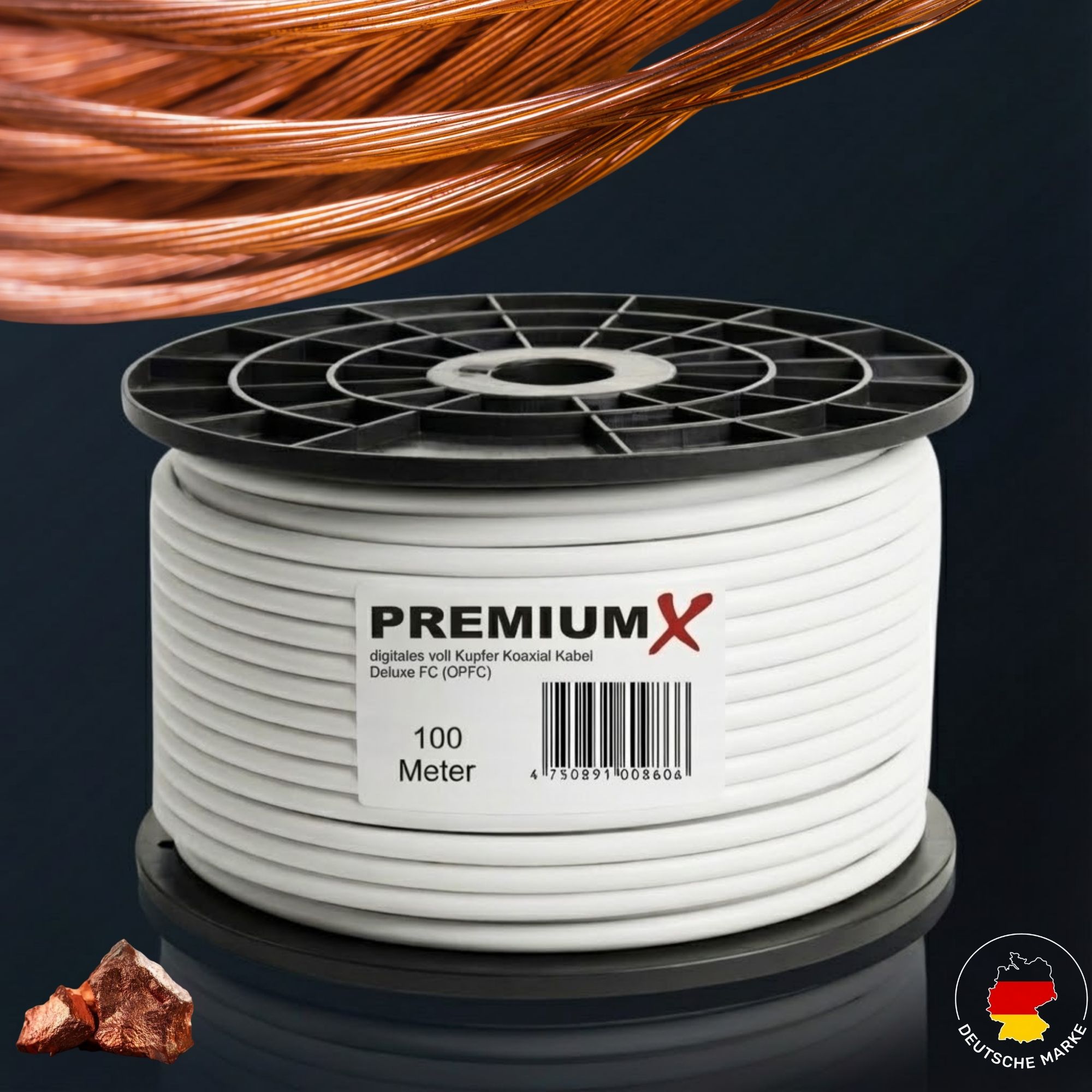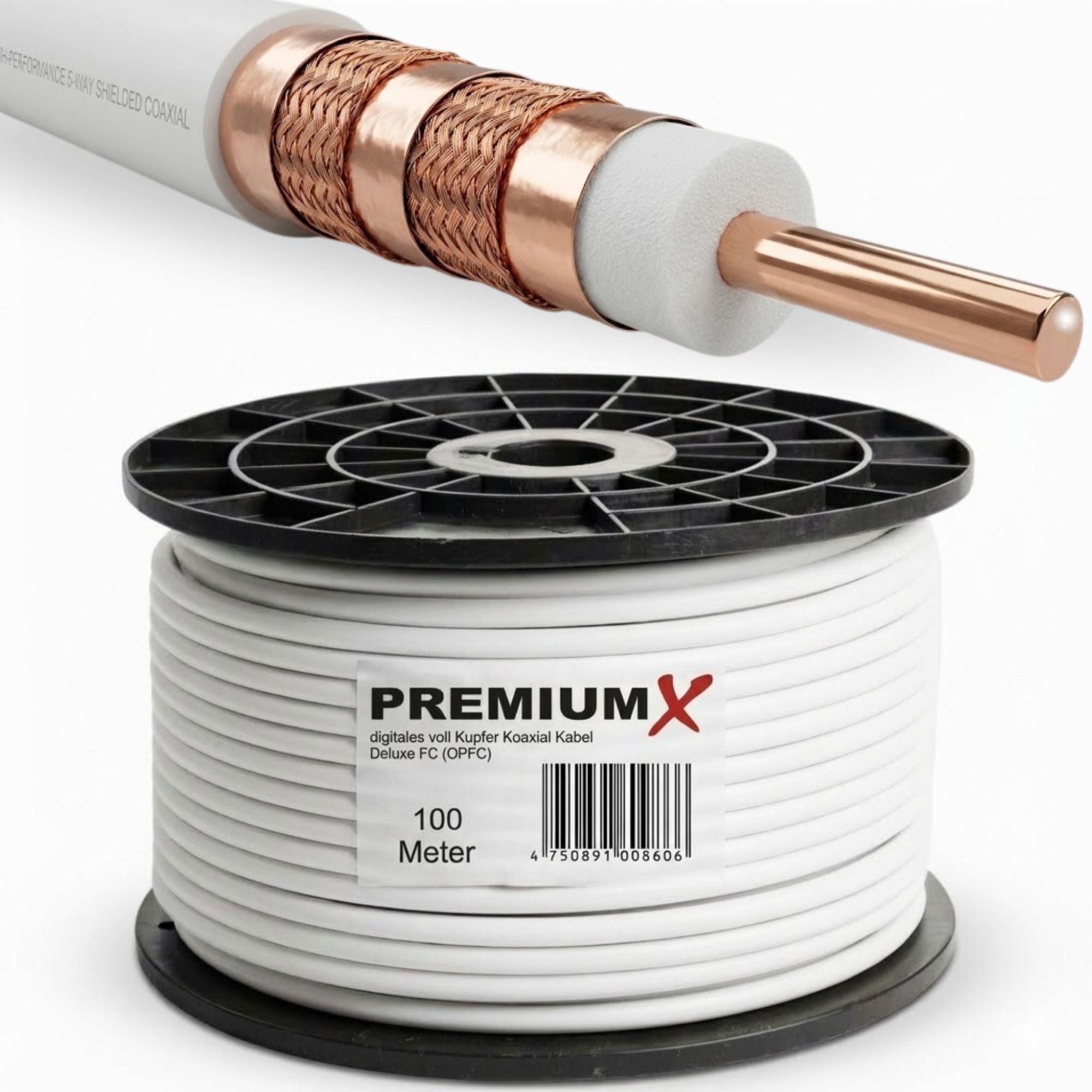 PremiumX DELUXE PRO REINES KUPFER 100% VOLLKUPFER Koaxialkabel 135dB 5-Fach geschirmt 100m 100 Meter SAT Antennenkabel NEU
