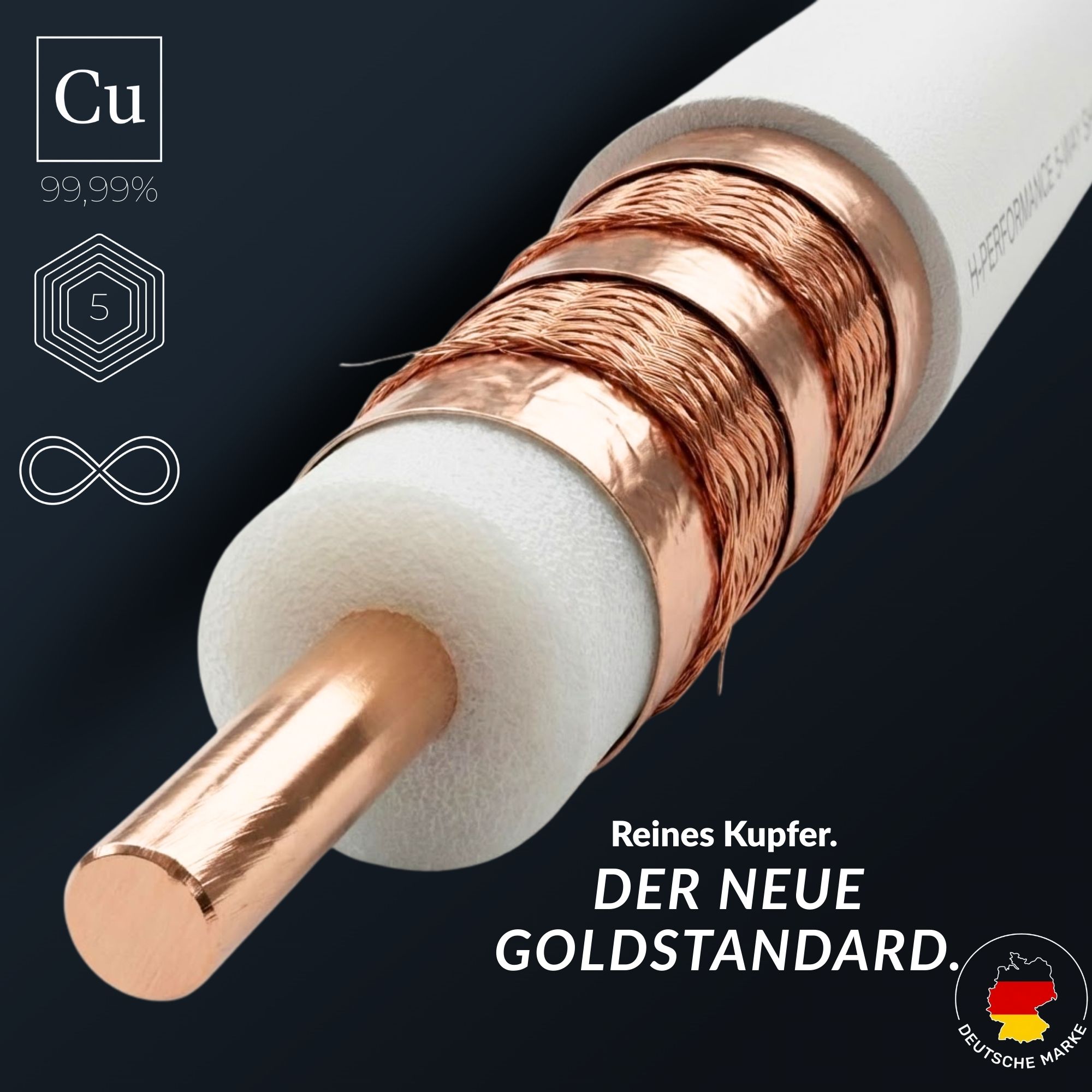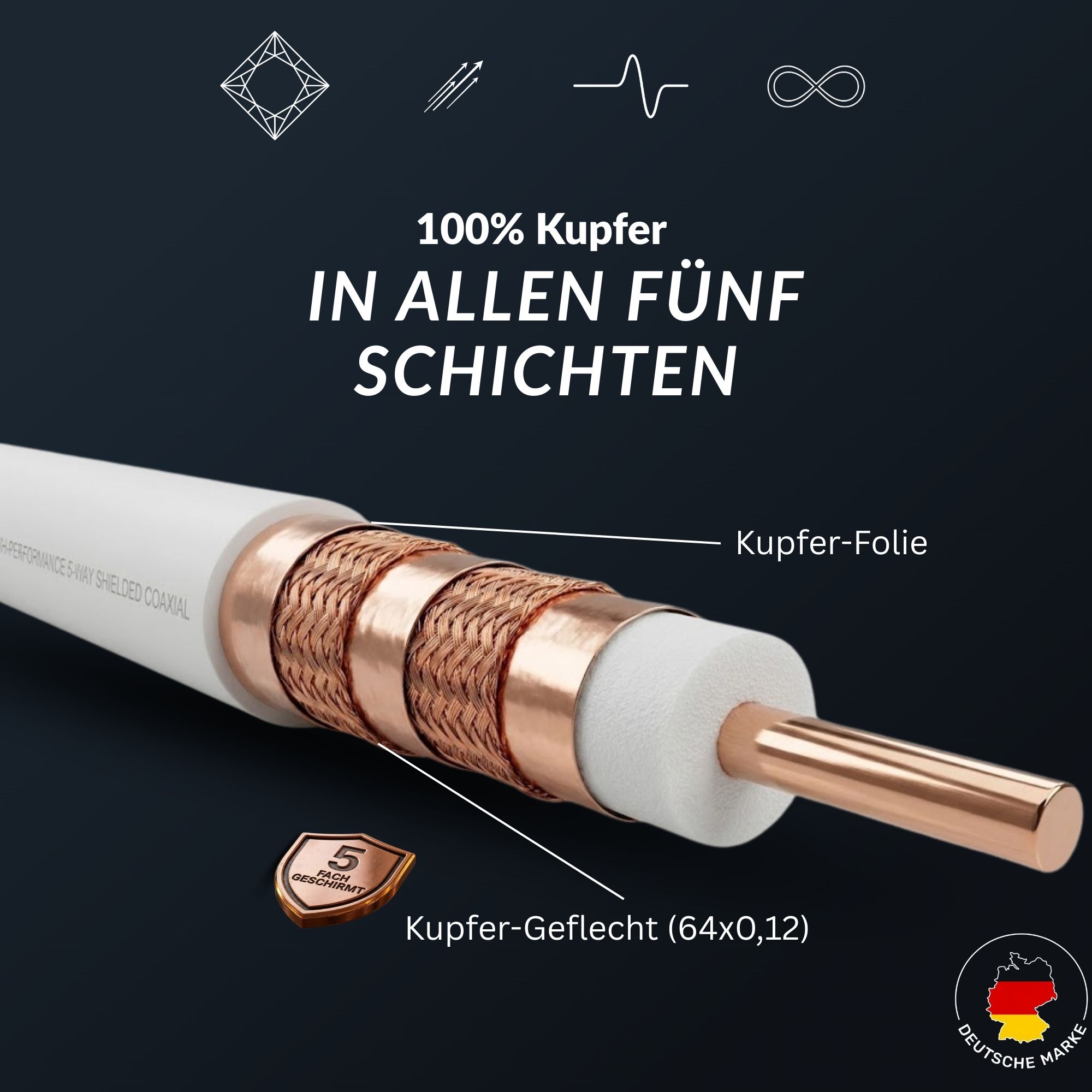 1x 50m Koaxial Kabel Voll-Kupfer 135dB 5-Fach geschirmt reines Kupfer