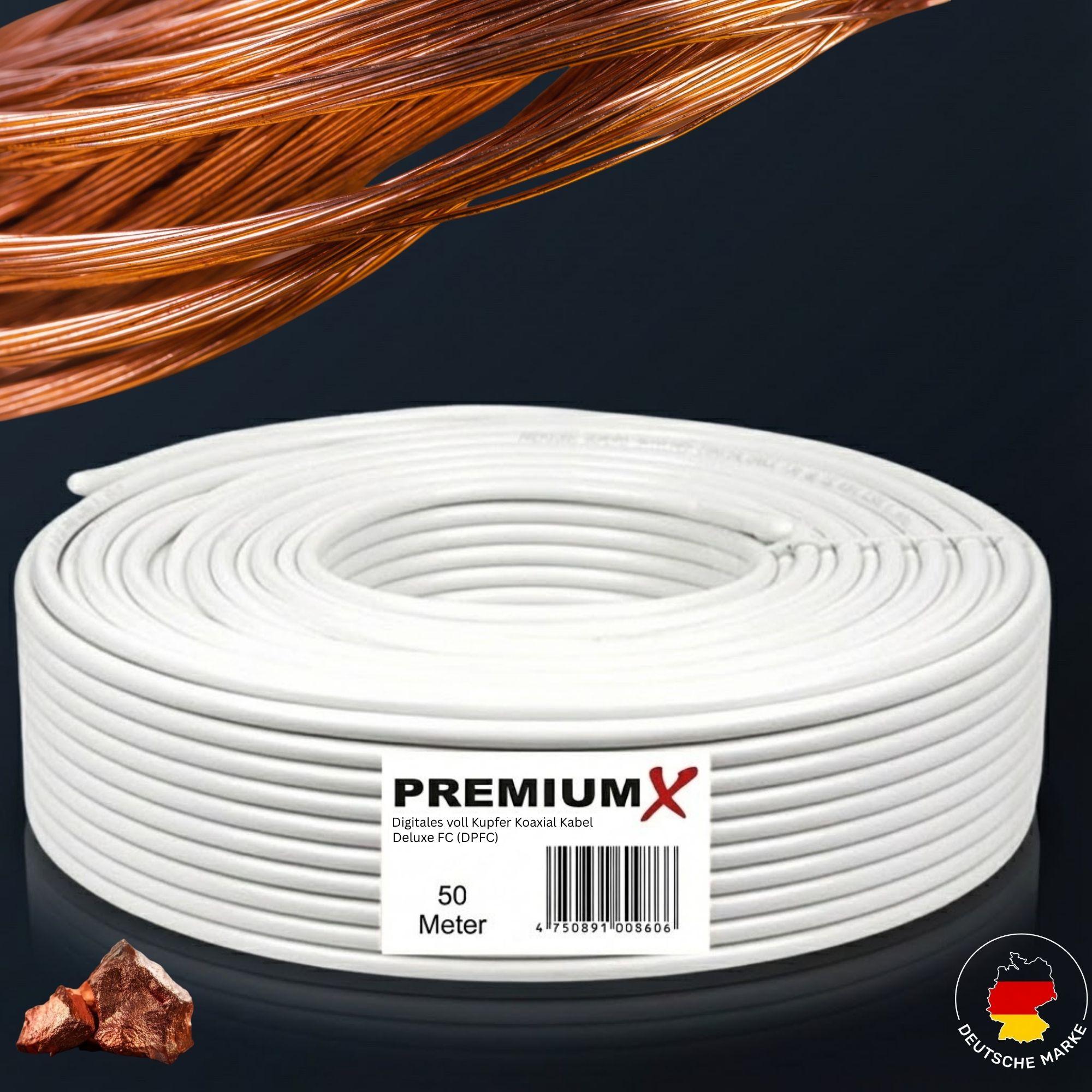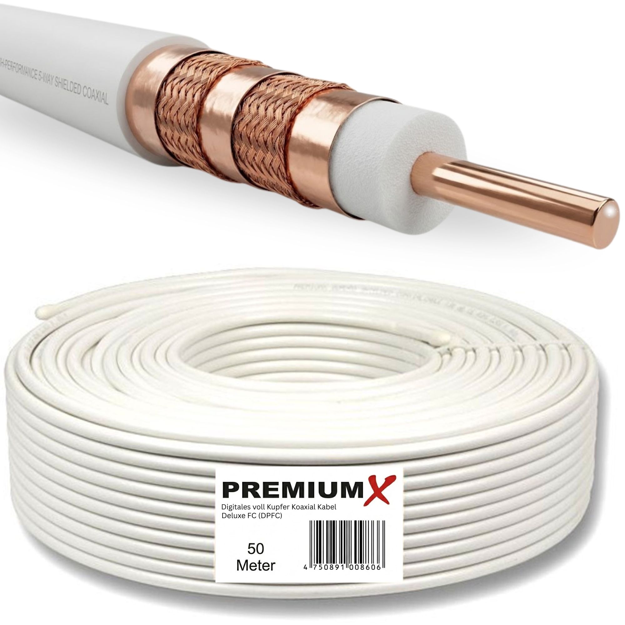 PremiumX Deluxe PRO Vollkupfer Koaxial Kabel 135dB 5-Fach geschirmt 50 Meter SAT Antennenkabel CU Kupfer